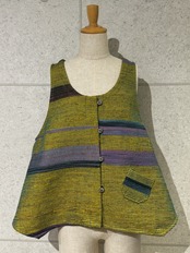時間をかけて織り上げた生地を損なわないよう、丁寧に縫製しショートベストに仕上げました。